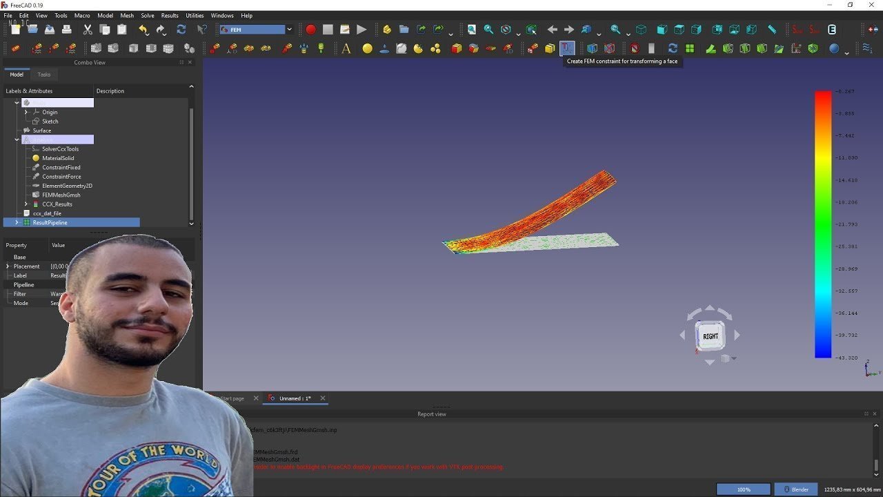 Bu videoda freecad fem tezgahının kullanılışı ile ilgili hızlıca parametrelerin tanımlanması ve analizin çözümü gösterilmiştir.